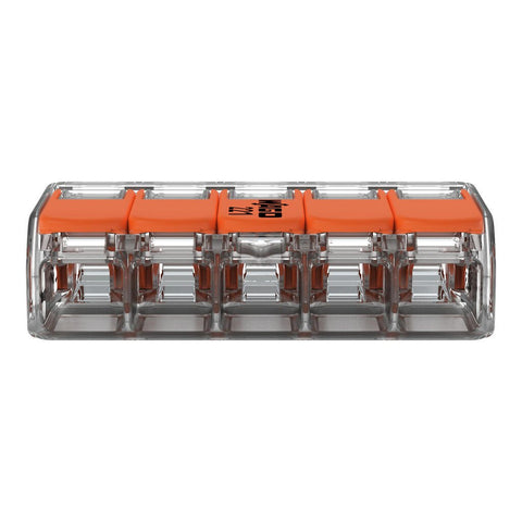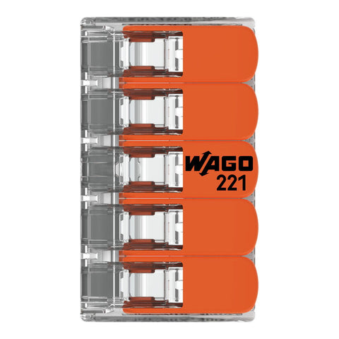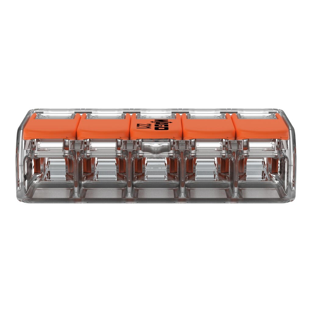 Wago 221-415 Transparent 5-Pole Compact Lever Operated Connector with CAGE CLAMP – Pack of 25